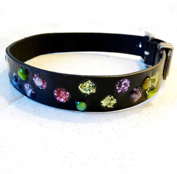 Collares de cuero son tan caros, pero mis bestias les gusta tener algo bueno que llevar. Puesto que alguien en mi casa siempre parece llevar a un cinturón, pensé que probar algunos reutilización y hacer mis propios collares. Este diseño utiliza epoxi para hacer joyas faux prueba del perro para la decoración.
