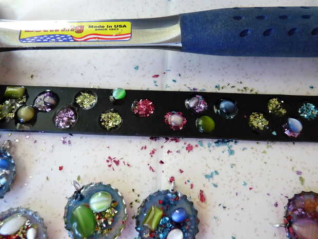 (He añadido algunas cabujón de ojo de gato mientras que el pegamento estaba todavía húmedo después de hecho mi brillo "joyas").