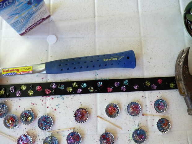 Ya sea usar el epoxi sobrante o epoxi según las instrucciones de la mezcla y pegar cosas al collar. Esperar el tiempo de curado completo antes de hacer cualquier cosa en el collar.