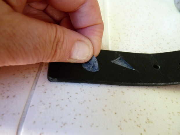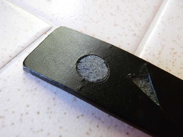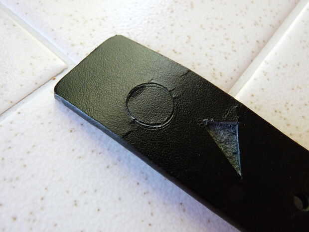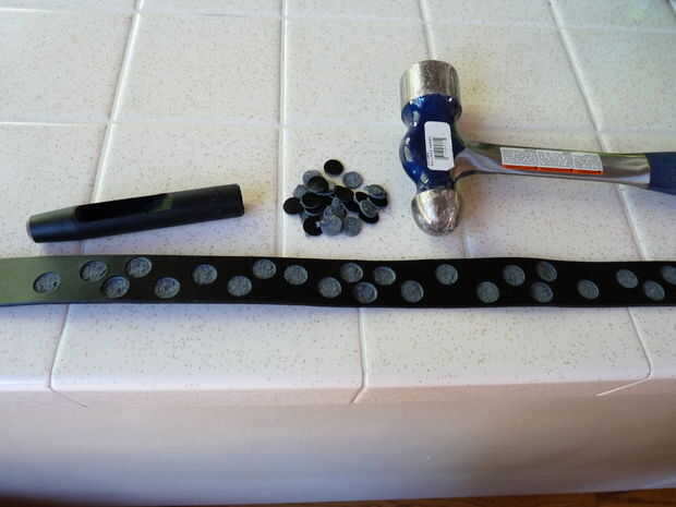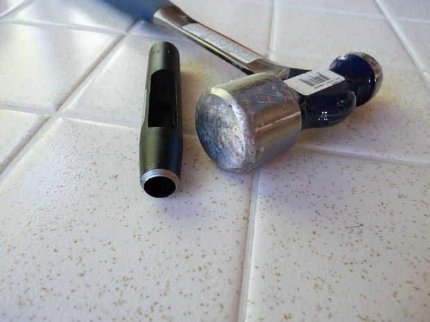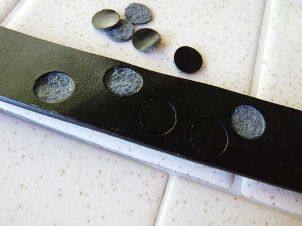 1) Utilice un sacador de cuero de 1/2" o un cuchillo para cortar formas al azar en la parte delantera del cuello. Perfore o corte sólo PARTWAY a través de la piel. Debes dejar la espalda acabada sólido, aunque no importa cómo a conseguir pasar a través de usted. Sólo no se cortan a través de todo el camino.