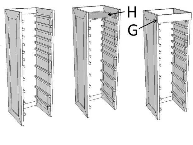 • Garantizar la cara falso cajón (pieza G) a la parte superior de la unidad interior utilizando galletas o tacos