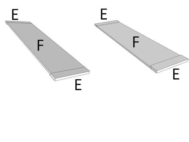 • Hacer una muesca cuadrada 1/2" pieza E utilizando una sierra de mesa para el panel de madera contrachapada para encajar en