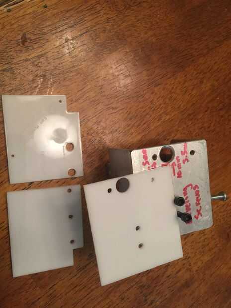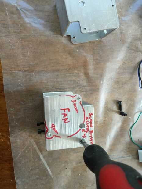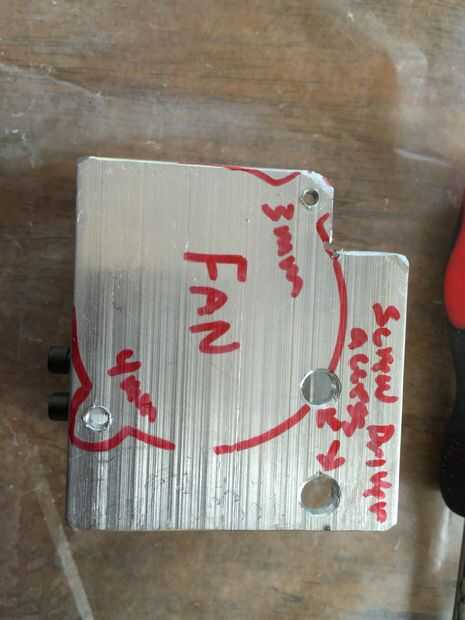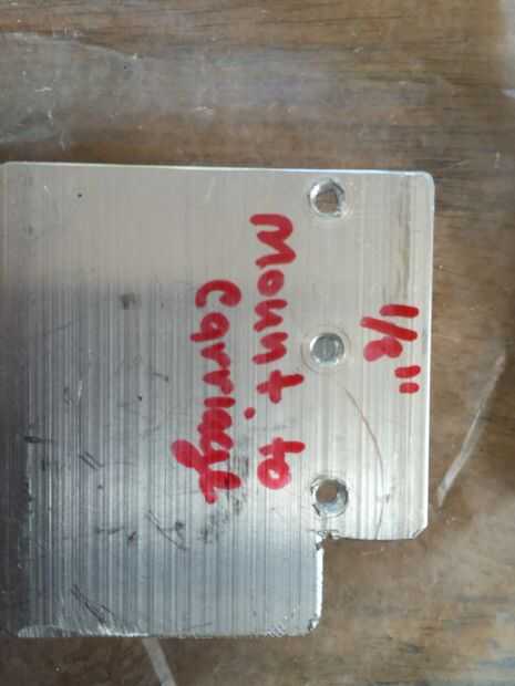 Cuando haya terminado con el corte y la perforación de su montaje sería como la de las fotos. Se muestra en la imagen abajo después de ser fijada en el carro X, al conectar el ventilador a la cara frontal. (Nótese cómo la muesca evita que el Monte interfiriendo con el interruptor de límite).