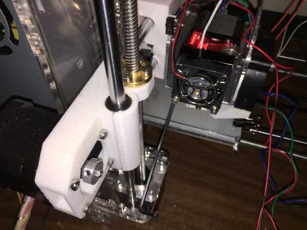 Con el montaje en el lugar y el hotend correspondiente puede ahora colocar el estirador (montado en el motor paso a paso) en el Monte, alinear la tubería de PTFE de la hotend con la extrusora como se muestra en la construcción de instrucciones para la extrusora. Ajustar los tornillos niveladores debajo del Monte a tomar ningún tipo de presión en el extremo posterior del motor paso a paso.