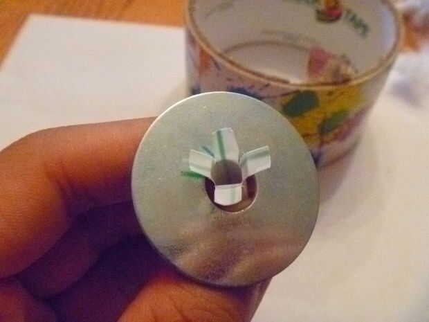 Doble aberturas hacia el exterior haciendo forma de abanico en el extremo de la pajilla, medida para asegurarse de que ajuste la arandela de metal.
