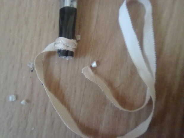 Con cinta adhesiva y luego realizar un fino anillo alrededor, (que va entre los dos anillos de linóleo). Para eso, usar un buen pegamento, que es flexible y muy fuerte. Creo que usé para textiles, zapatos y esas cosas (olía horrible: D)