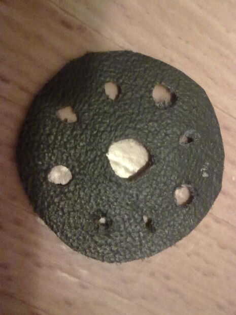 Bajo el "fan" he puesto un cirle de cuero negro con algunos agujeros para movimiento de aire. Es sligtly más pequeño entonces la base, sobre radio cm 1.9