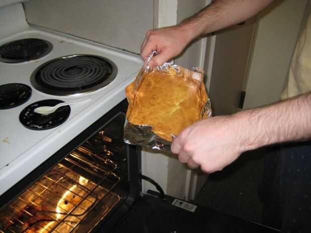 Una vez que crees que está listo, llegas a conocer otra ventaja de cocinar en una cacerola de aluminio de aluminio: usted sólo puede tire hacia fuera con las manos. Agarrar el papel de aluminio en los extremos y tire de ella. Generalmente flip boca abajo sobre un plato y retire la lámina.