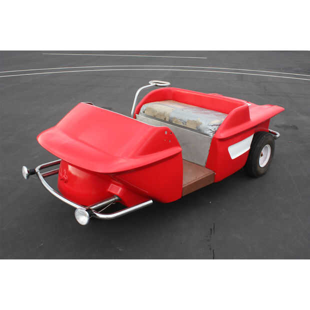 "En los swingin'años 60, el majestuoso césped jinete Mark IV se veía desfilando alrededor de campos de golf más finos de la nación. Este rey teal y blanco del club de país rodó a través de los verdes durante años antes de ser retirado.