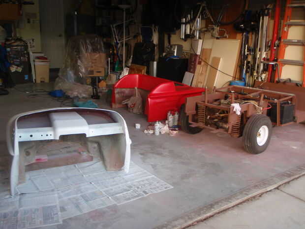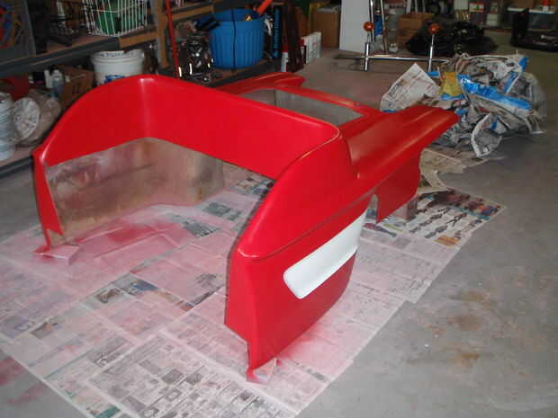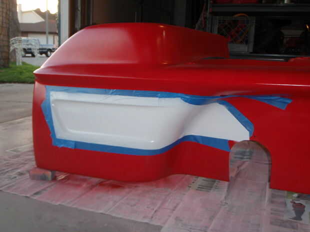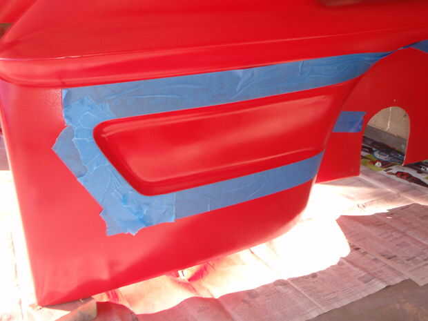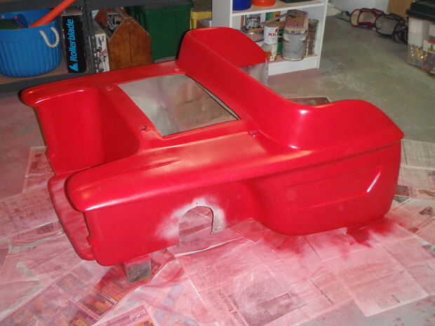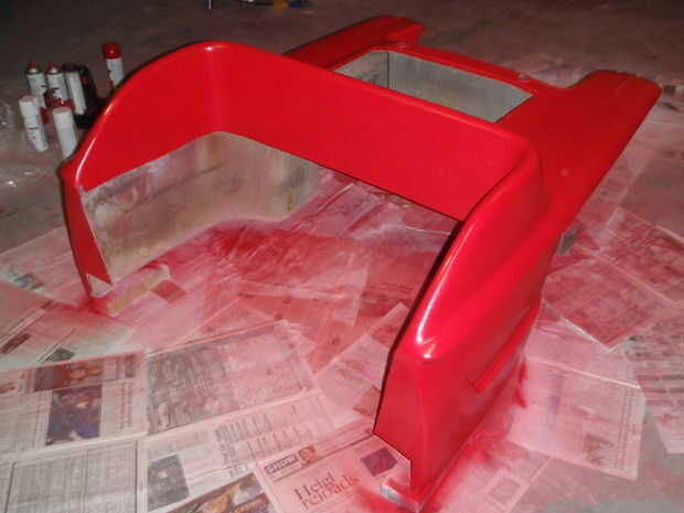Hice todo el trabajo de pintura para el carro, y tardó una semana o así hasta el final todo. Terminé usando cinco latas de Ace blanco cartilla, cuatro latas de Ace bandera roja, y una poder de blanco satén de Ace.