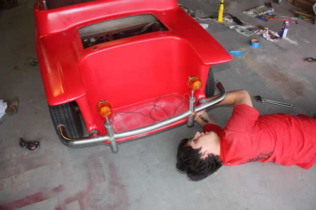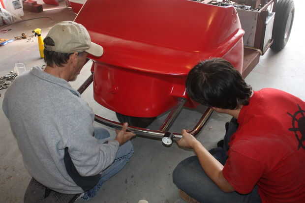 La manera en que recibimos el carro, realmente nunca habíamos visto la fibra de vidrio cuerpo puesto en el carro. Sólo lo habíamos visto como marco oxidado con ruedas. Fue muy emocionante verlo finalmente en el marco.