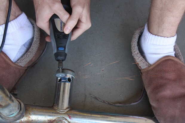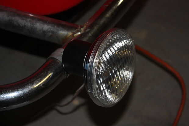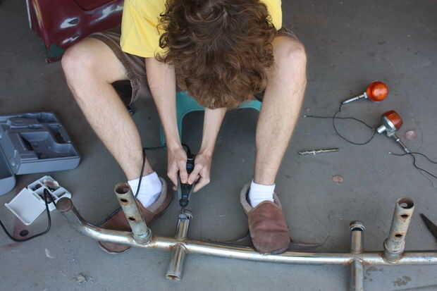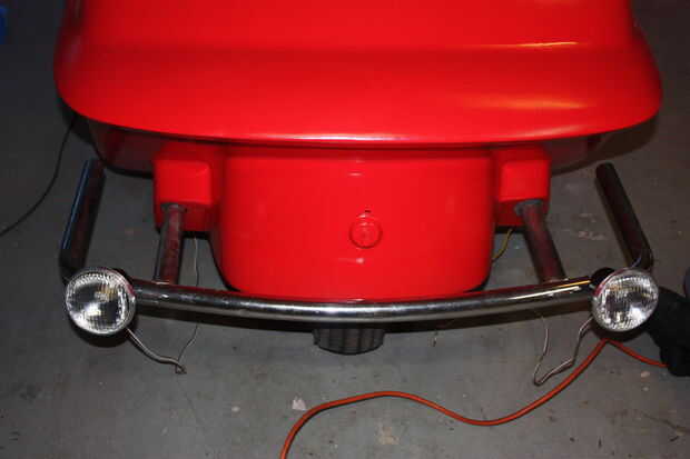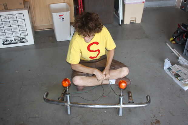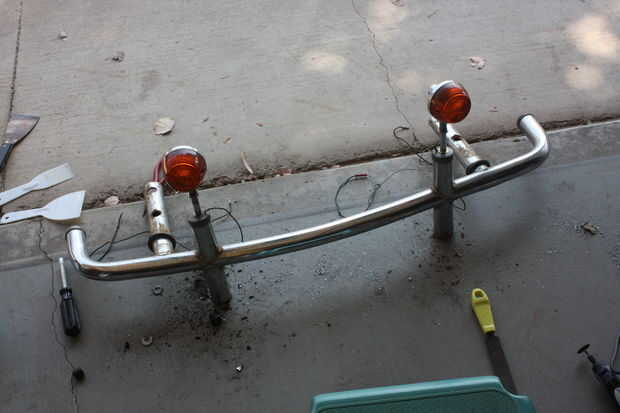 Decidimos obtener algunas luces de un desguace de motos en el parachoques trasero. Sólo cuestan unos 10 dólares, por lo que fue un dulce trato para tales luces de aspecto agradables. Tuvimos que modificar el parachoques trasero en orden para que se fije muy bien. Se trata de perforar dos agujeros en la parte superior y luego corte una ranura para el cableado ejecutar fuera de.