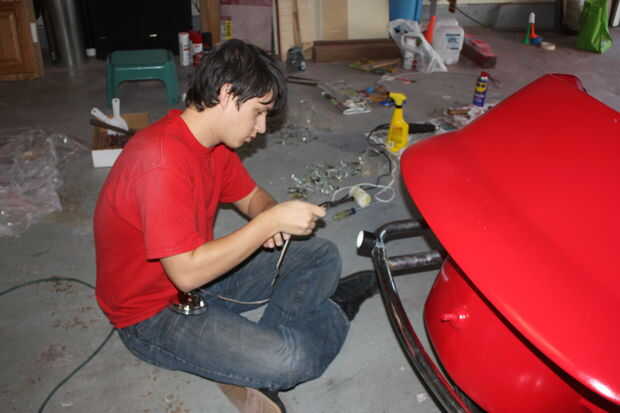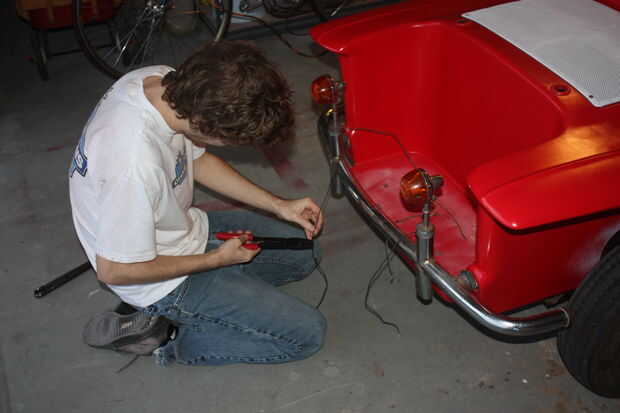 Instalamos el sistema de iluminación después de que consiguió las piezas de cuerpo, pero había estado trabajando en él durante la mayor parte de la restauración.