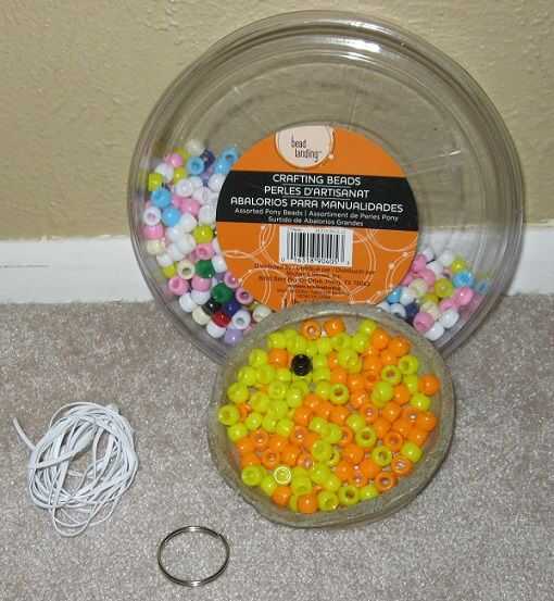 Todos estos materiales pueden encontrarse en cualquier tienda de artesanía. Mis granos provenían de un cubo a granel de granos de mulitcolors.