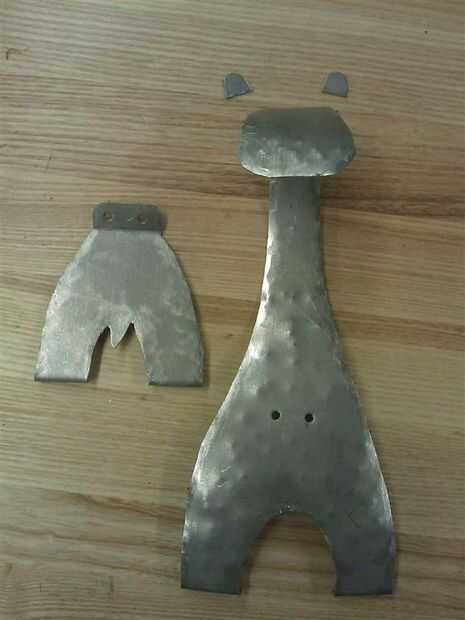 A continuación, enrosque los remaches por la parte delantera de la jirafa, luego a través de las piernas. Corte el remache así restos de ~ 5mm que sobresale del metal. El lado de la bola del martillo, golpe con el extremo cortado del remache para que hongos y "peens" en una cabeza similar a la del lado opuesto del remache. De la Peña hasta que quede apretado y fuerte.