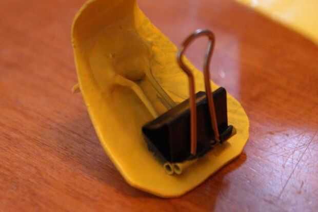 Cinta o abrazadera clip binder en lugar detrás de la cara de la jirafa. Mezclar algunos epoxy metal vinculante y generosamente repartidas una manija del clip binder, que bien. Espere 24 horas para que cure.