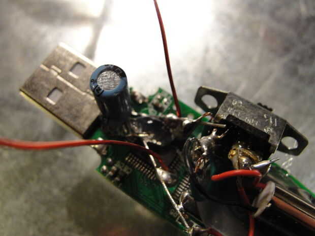 Ahora todo lo que tienes que hacer es conectarlo al ordenador. Asegúrese de que tiene el resistor en el circuito o será demasiado poder. El interruptor y ver que la inquietud. La foto es mi idea del concepto de una unidad de la inquietud que se ejecuta fuera de un condensador.