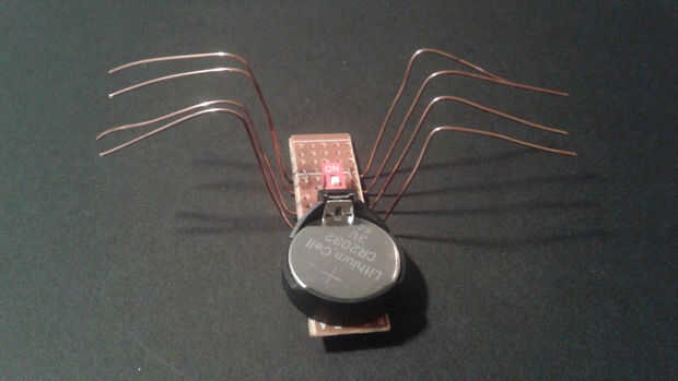 La forma de la pierna y la posición es muy importante al comportamiento del bot. Usé los alicates de punta doblar las piernas en un insecto como posición. He encontrado que las piernas funcionan mejor con la parte inferior de la pierna perpendicular a la superficie de viaje y los pies doblados hacia atrás ligeramente. Experimente con diferentes posiciones hasta que el bot que quieras. Doblar el alambre cobre cuidadosamente se pone tieso si se ha doblado y remodelado muchas veces.