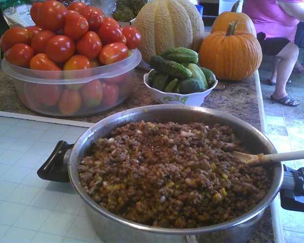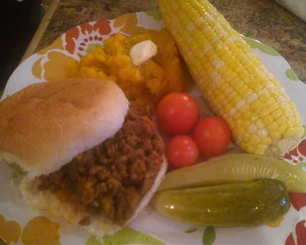 Nuestro pic muestra sirvió con calabaza dulce (sacado de mi jardín), maíz en mazorca, tomates cherry (del jardín) y algunos de mi abuelita deliciosa casera eneldo encurtidos (hay un instructable para hacerlos así).