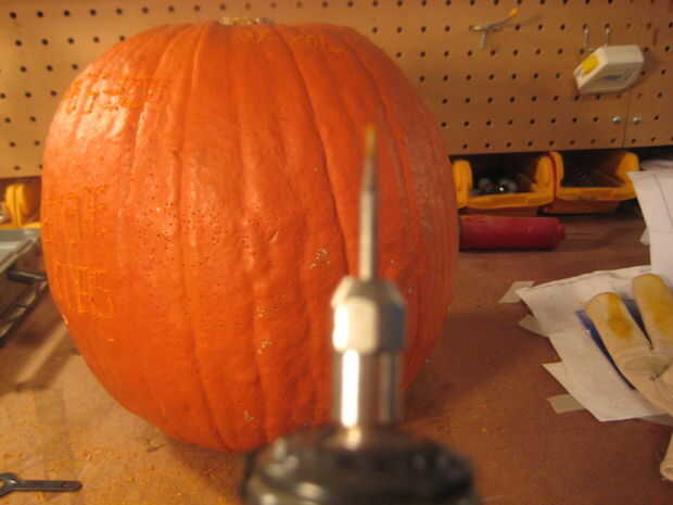 Luego volver a través y hacer el surco más profundo, cerca de la mitad una pulgada de profundidad o menos si la calabaza no es muy gruesa.