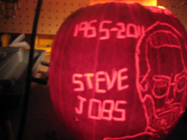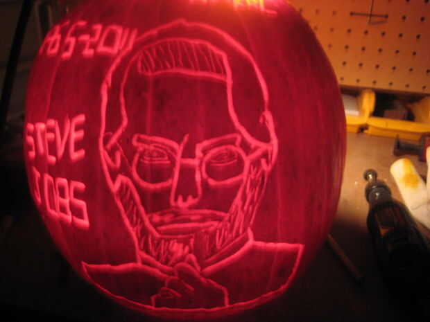 esta calabaza está tallada con la icónica foto de Steve Jobs. Contraste fue introducido a la fotografía digital y luego tallado usando herramientas de tallado de calabaza y una aguja de coser para agujeros más pequeños. Me tomó unas 2 horas de mapeo