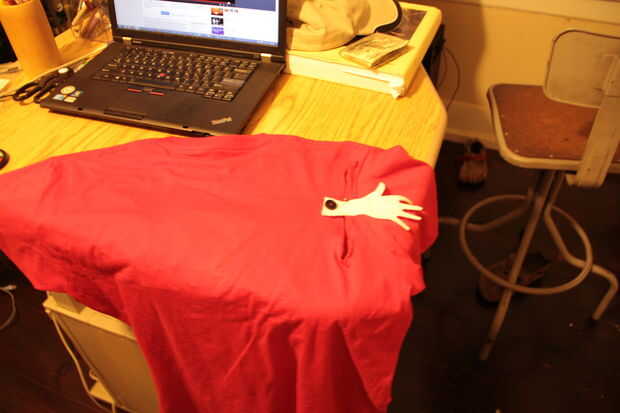 Significado, no sólo colocar un gráfico en su camisa, cambiar para encajar el tema. Puede ser muy simple. Mi camisa sólo tiene dos agujeros en los hombros donde la gente puede poner sus brazos a través cuando ustedes han picado. Otro ejemplo sería en lugar de una camisa de Hombre de mimbre que sólo dice "Wicker Man" en la parte delantera, o tiene una foto de Nic Cage, tal vez hacer una camiseta que es lleno con cientos de abejas. Eso sería más fresco :)