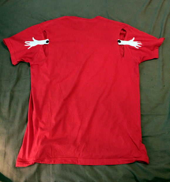 Puede celebrar un poco de la rareza de la película, Santa Sangre, de Alejandro Jodorowsky, usando alrededor de una camisa igualmente rara. La película se centra alrededor de un culto cristiano que rinde culto a un mártir cuyos brazos se cortan, entonces brazos de líder sectario Haz cortados a sí misma y ella hace su marioneta hijo sus brazos alrededor de ella, "Quién línea es él de todos modos"-estilo. Después de ver la película, empezar a darse cuenta de que la pérdida de ambos brazos es simplemente un accidente, así que por qué no estar preparado!