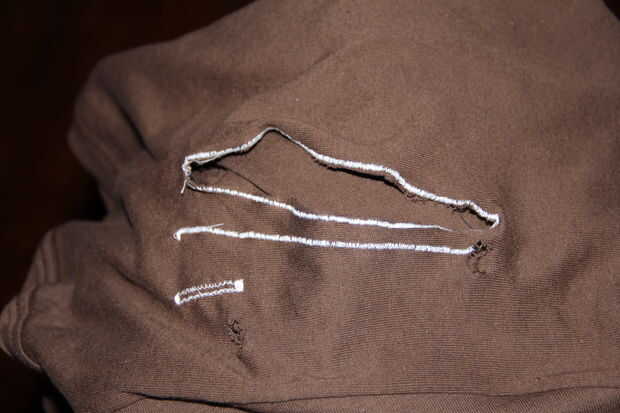 agarrar un viejo camo Tee y mostrar su apoyo a nuestras tropas sobre la Navidad.Paso 1: materiales 1 camo t-shirt1 tira de tela fuzzyPernera de los pantalones 1 vaquerosTijerasCampanasRelleno de almohada vieja - 1 TacoAguja & hiloPaso 2: corte De la