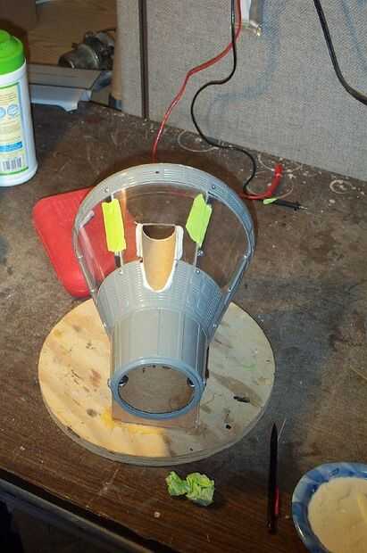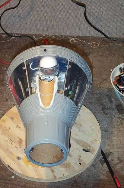 El un cambio que hice que no muestran (bien) aquí fue que construí una extensión de fibra de vidrio a la nariz de la cápsula. Usé un tubo de 3,5" de fenólicos y había construido un tapón de madera contrachapada de aviones de modelo.