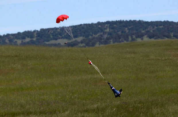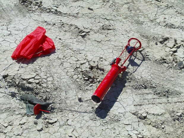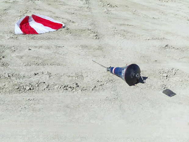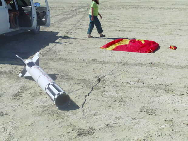 Vuelan a 2500' también hace extremadamente difícil perder de vista las tres secciones y porque volamos con AeroPAC hacia fuera en el desierto de Black Rock, es muy difícil de perder nada, incluso cuando el componente más pequeño logra liberarse (como la tapa a la cápsula).