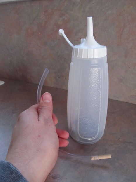 6. Sujete el tubo en una mano y la botella en la otra lentamente llene tu pulsera. Trate de dejar sobre 1/2 separación de la parte superior.