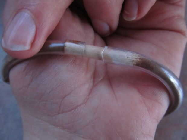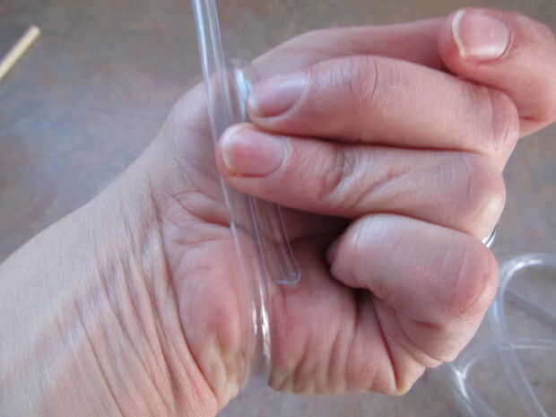 7. una vez que tu pulsera está llena, ponlo alrededor de tu muñeca y deslice el extremo abierto del tubo sobre la otra mitad del "corcho"