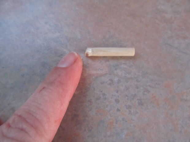 4. Introduzca la pieza de "corcho" en un extremo de la tubería hasta la mitad.