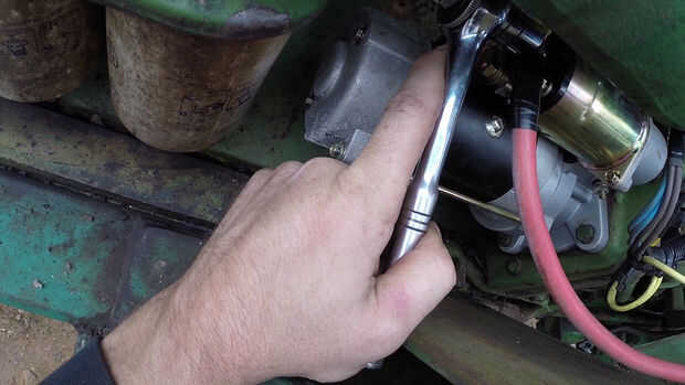 - El otro extremo de este cable debe ir a la izquierda pequeño solenoide en el motor de arranque.