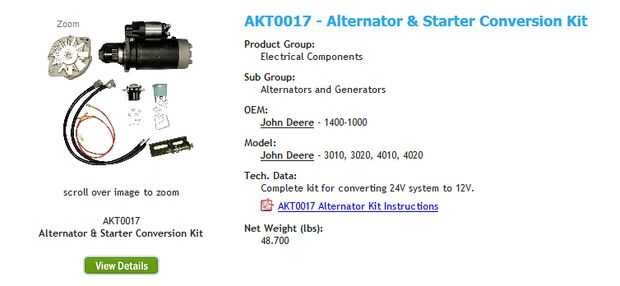 - En mi investigación y hablando con otras personas que han trabajado en estas décadas, los mejores juegos son los que vienen con arrancadores de Nippondenso. Durar más tiempo y también los kits más caros. El número de parte en este kit es A-TS-8000 y está disponible de varias fuentes tales como John Deere, A & I productos y algunos otros. Tenga cuidado sin embargo hay personas de esa lista el mismo número de parte que están a la venta una versión más barata del kit que contiene un arranque Nippondenso. El precio más barato que encontré en este kit era en piezas del Tractor de hierro cansada de $670, disponible aquí. Contactar con ellos para asegurarse de que tiene el Arranque Nippondenso si es lo que quieres. Tenga en cuenta que este kit viene con el motor de arranque, alternador, soporte, alternador, cables, un solenoide pero no medidor de voltaje.