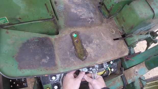- Empiece por desconectar el cable del poste negativo en el lado izquierdo del tractor.
