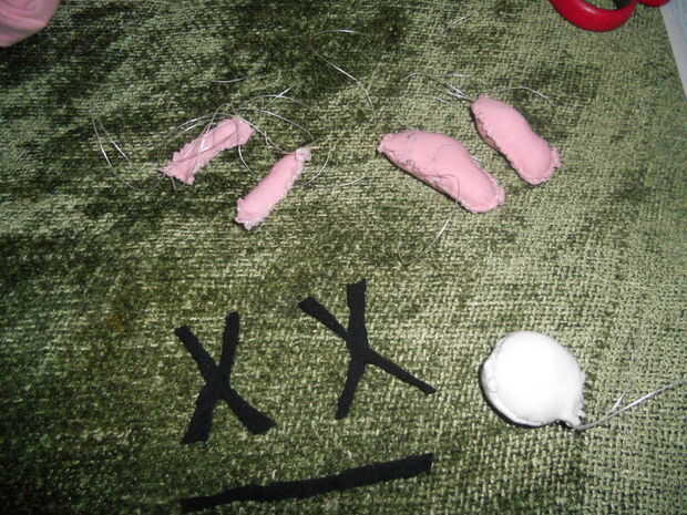 Repita los pasos de costura para los brazos, piernas y cola. También puede agregar piezas adicionales como cosido en los ojos de cualquier forma.
