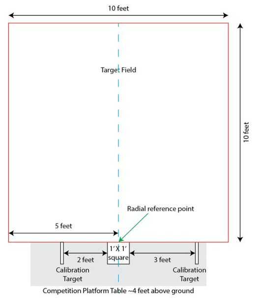 3. (no se muestra) el objetivo en el campo puede ser 1.5 pies por encima o por debajo de la mesa. La torreta tiene que poder orientar en esta gama.