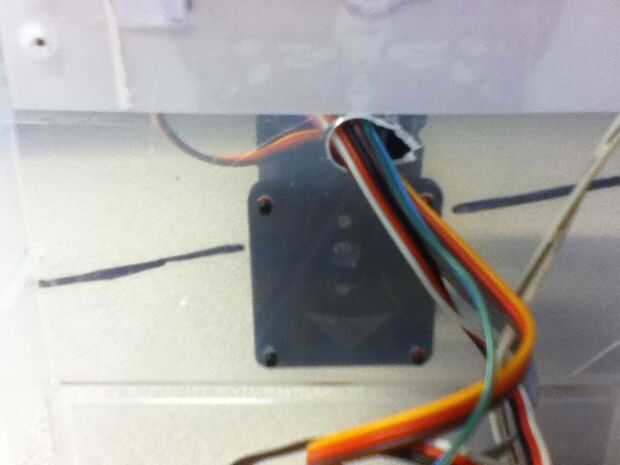 La construcción física de la torrecilla seguía siendo bastante constante durante todo el proyecto. Utilicé una lámina de plástico para montar el sensor de ultrasonidos y mecanismo para la inclinación de la leña. Si hubiera tenido acceso a una impresora 3D, habría impreso un montaje mejor. me gustaría sugerir que en la medida de lo posible una parte imprimir. Evitará que algunos otros errores que tuve que ajustar. Dicho esto, haciendo como hice permitirá aceptable funcionamiento.