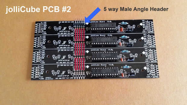 Paso 7 - soldadura cabecera 5 vías macho ángulo J2 de PCB #2 para la primera capa de matriz de LED.