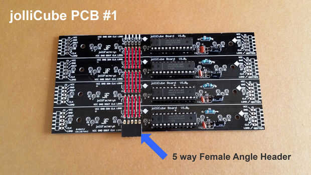 Paso 5 - rúbrica de soldadura ángulo hembra de 5 vías a J4 de PCB #1 para la última capa de matriz de LED.