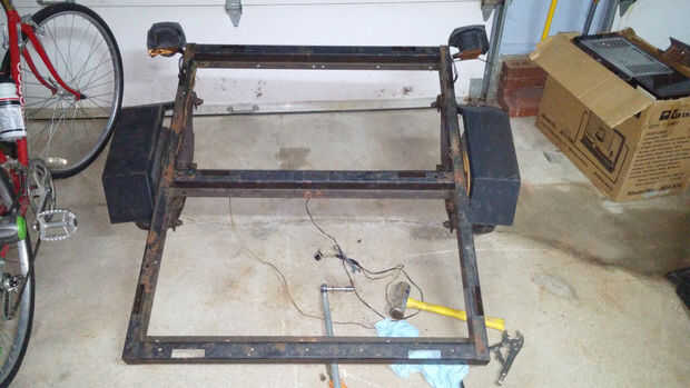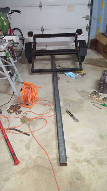Sustituyéndolo por un tubo de acero de la pared de 11 pies 3 x el 2" 3/16 y colocar al frente de 3 travesaños todos hacia atrás. En retrospectiva, 3/16 es un poco excesiva. Si iba a hacerlo de nuevo, probablemente usaría 2 x 2 1/8 tubo de acero de la pared.