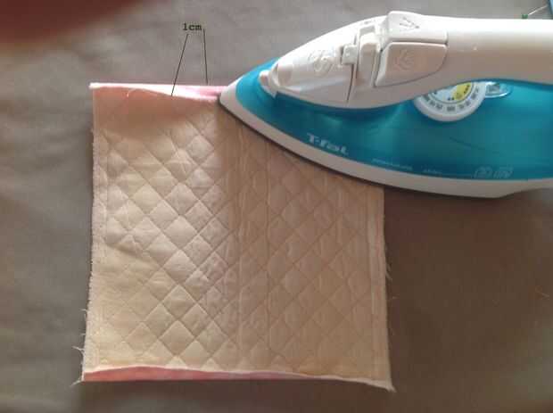 飾り布の22cmの長さの両端を、それぞれ、1センチ折りアイロンで折り目をつける。