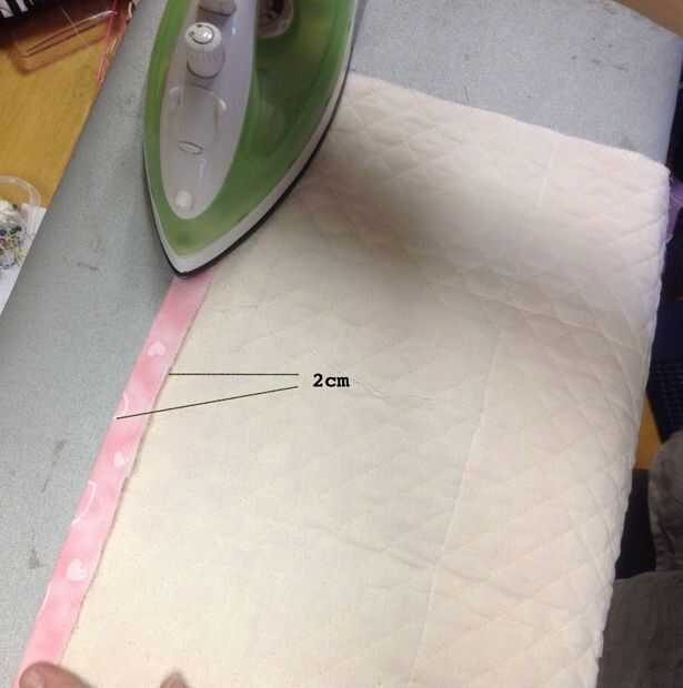 本体布の上部を2cmのところで折り、アイロンで折り目をつける。