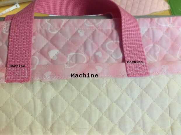 折り目に沿って、持ち手も含めて、ミシン掛けする。