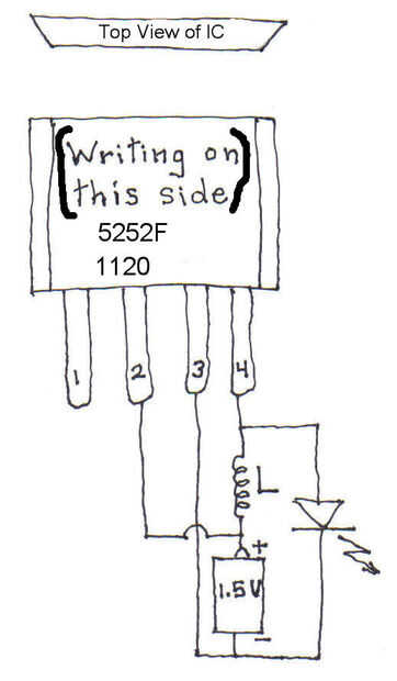 Con CI QX5252F conectado como se muestra, Pin 4 del IC muy rápidamente se conecta y desconecta a Pin 3, la negativa de la batería, haciendo que el LED parpadeando varias veces similares a la bruta "Joule Thief" ya mencionado. Pero aquí el LED parpadea rápidamente que el LED aparece totalmente encendido, más que algunas luces fluorescentes que tienen un parpadeo a ellos.