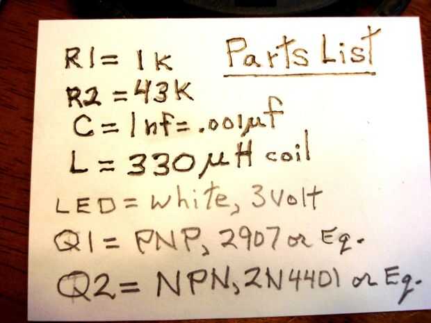 Después de ver la información sobre conductores del Joule Thief LED en internet decidí probar lo que. Después de conseguir algunas unidades de trabajo comencé a experimentar (como suelo hacer) con diferentes fuentes de piezas de objetos que puedo rec