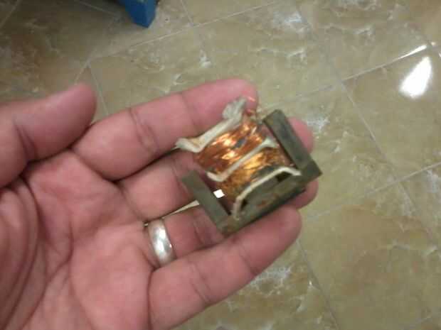 Primero tuve un alambre grueso con el mismo núcleo de ferrita y puede ser herida en 4 giros de parejas, por lo que no funcionó.