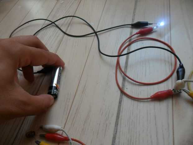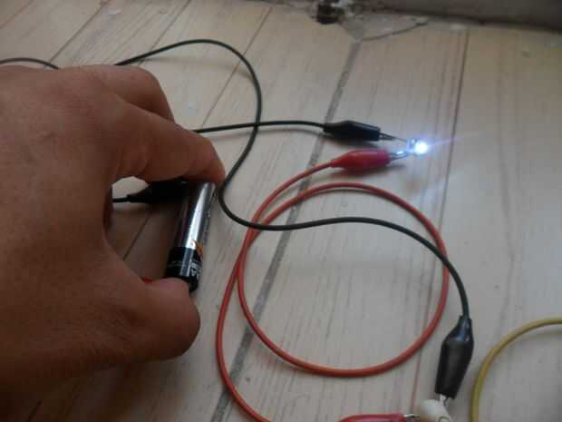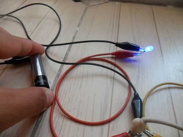 LED blanco y azul del LED se pueden iluminar con sólo una batería vieja del AA.