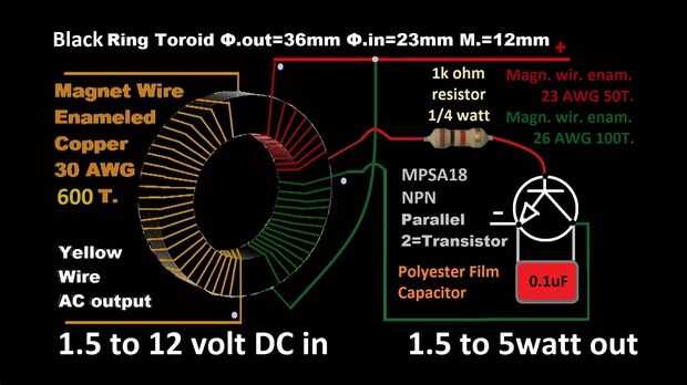 Caseros emergencia Joule Thief. Este conversor muy simple puede tomar muy poca tensión a impulso establecido por AC o DC pulsada para encender de 120v o 220v / 1.5w a 5 vatios bombillas LED o 5w. lámparas fluorescentes se puede lograr. ¡ Sí! robar toda la energía última de cualquier 12v, 9v, 6v, 3.7v, 3v, 1.5v, 1.2v batería. Super eficiente DIY pruebas con osciloscopio conocido como un "ámbito" ver la forma de la onda o "forma de onda" puede ser analizada para tales propiedades 1. Amplitud 2. Frecuencia 3. Tiempo. Ahorrar su dinero para obtener un efecto más!
